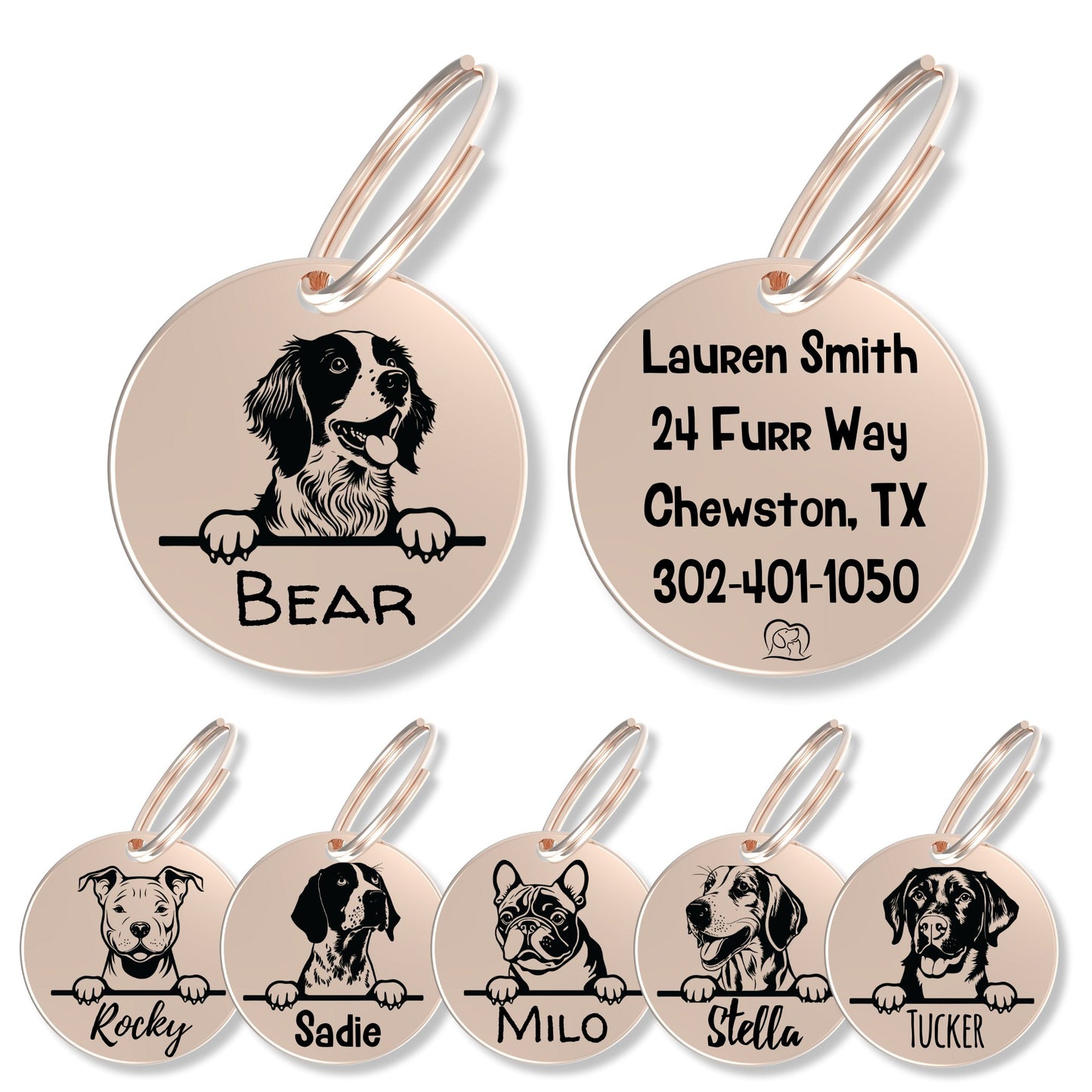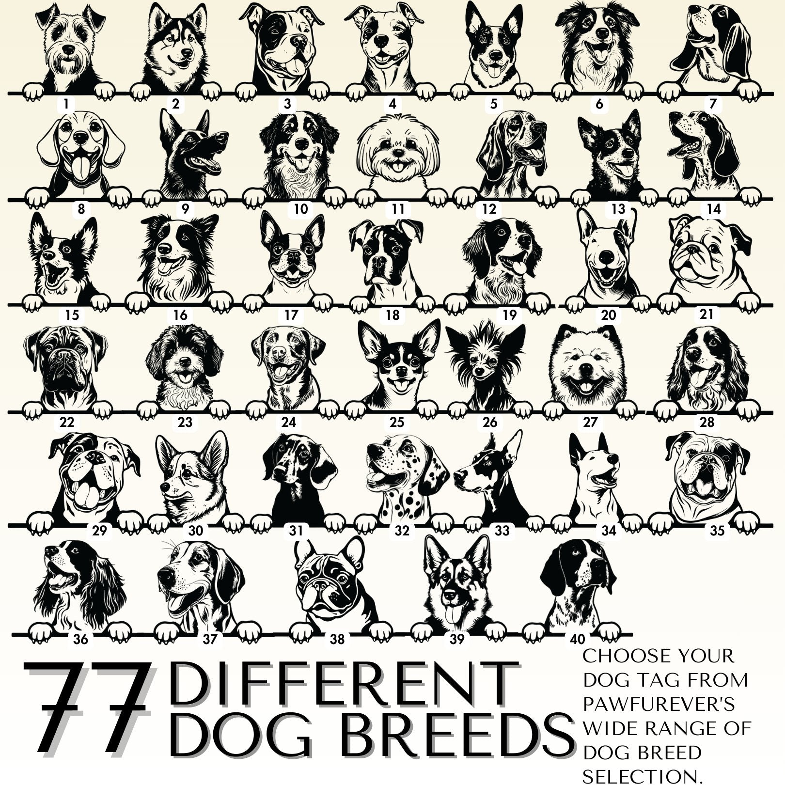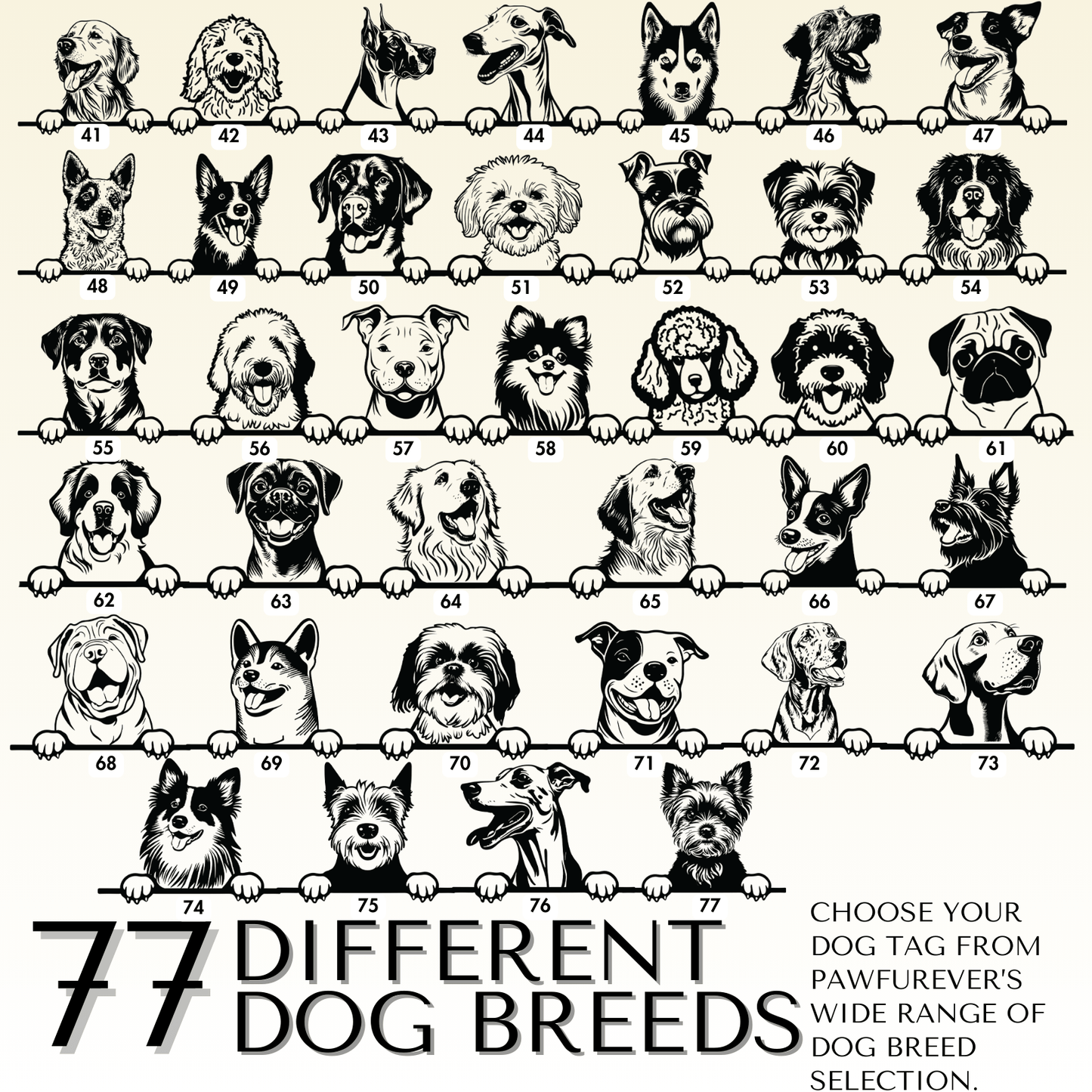 Put your pup's safety first with PawFurEver's extra-durable Personalized Dog ID Tag, with 75+ breed-specific designs and 3 colors to choose from. Get creative and add your own unique touch with our personalized engraving – get an image of your four-legged friend's breed laser-etched to recognize them like a rock star pup! The clear, long-lasting text will make it easy to spot, so you'll never have to worry about their safety again.
