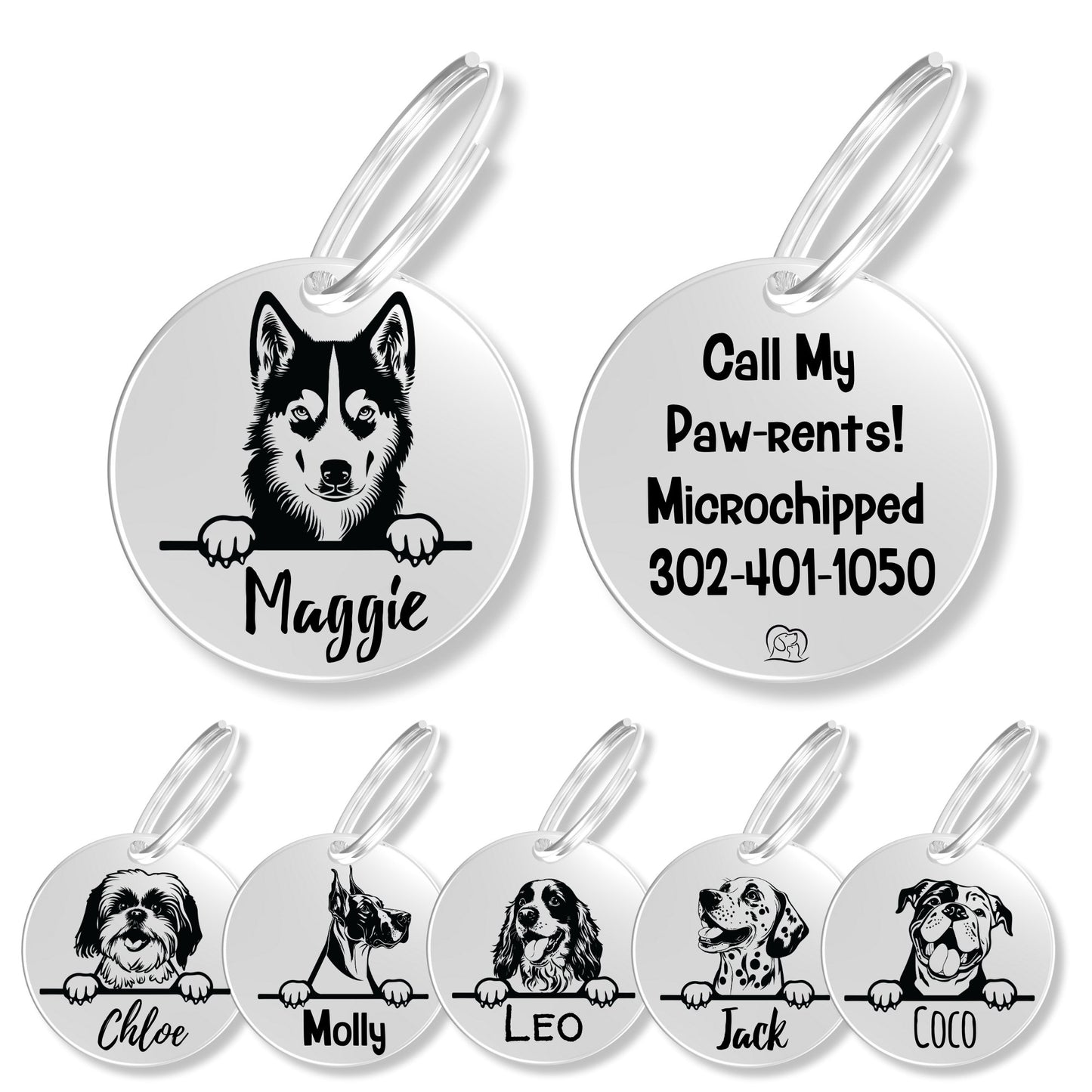 Put your pup's safety first with PawFurEver's extra-durable Personalized Dog ID Tag, with 75+ breed-specific designs and 3 colors to choose from. Get creative and add your own unique touch with our personalized engraving – get an image of your four-legged friend's breed laser-etched to recognize them like a rock star pup! The clear, long-lasting text will make it easy to spot, so you'll never have to worry about their safety again.